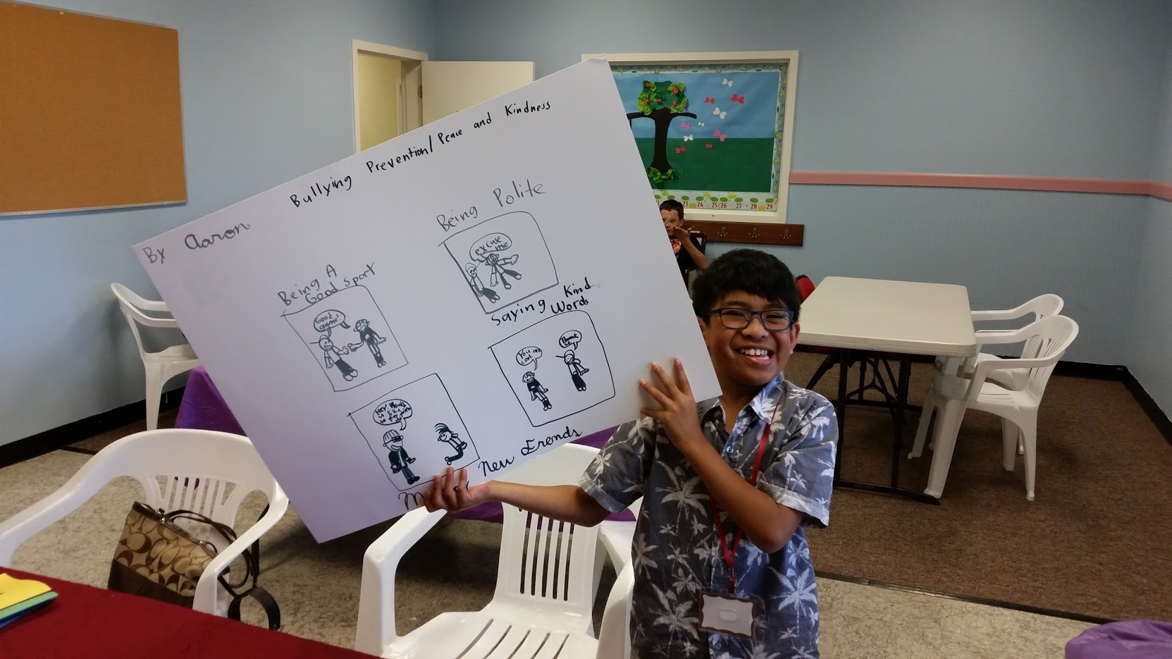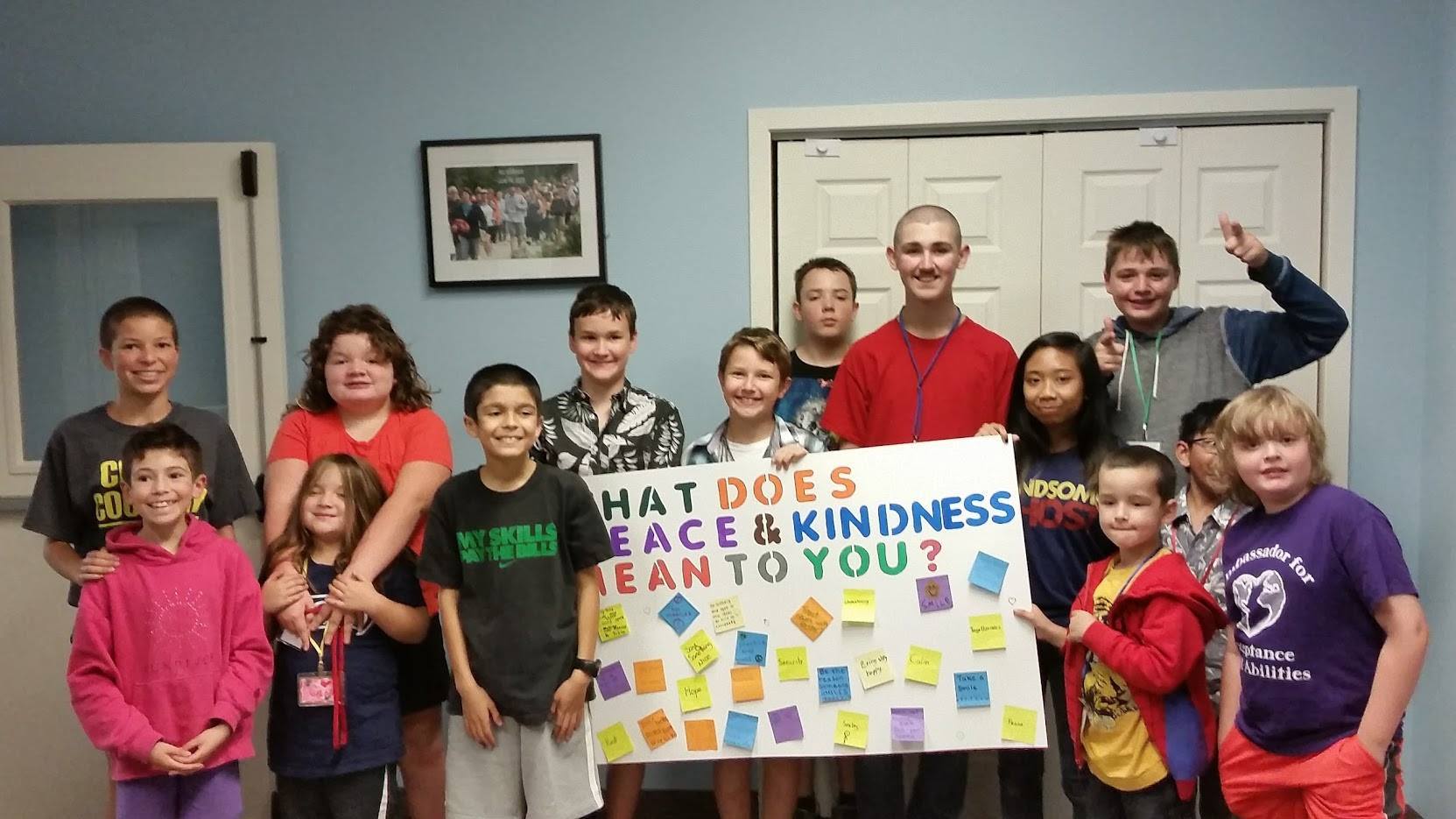 One of the projects was for each of the kids produce a bullying awareness poster to display at their local school. Â It was wonderful to see all of the different creative ideas that went into each poster. Each club member had the opportunity to share his/her poster with the club, explaining their thought process and how they supported Peace and Kindness.