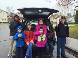 This project was a family favorite and we have done it each year since (2015, 2016, 2017, 2018). In our second year, we had a reporter from The Columbian follow our group and do a story about Autism Serves Kids Care Club. Here is a group picture from that year: