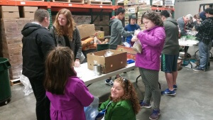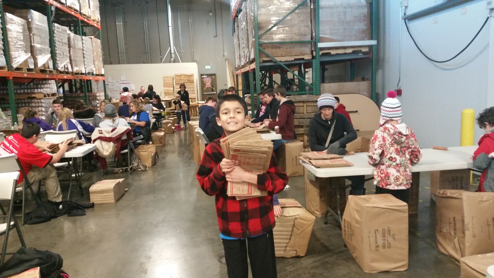 For our outing, we went to the Clark County Food Bank for a repacking project. When we arrived we found out that the Clark County Food Bank and the Humane Society of Southwest Washington were teaming up to help get pet food out to those with animals who are in need so we were not only able to serve the Clark County Food Bank but the Humane Society of Southwest Washington as well.