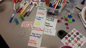 We brought back the kindness cards for this event which was very popular at prior meetings. Â Bringing kindness to others is always a good way to take the focus off ourselves and bring joy to others. We also talked about random acts of kindness.