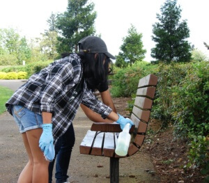 We were able to pick up litter, wipe down equipment and signs and rake bark to make the safer for those using the play equipment in the park. Here are some photos of the day.
